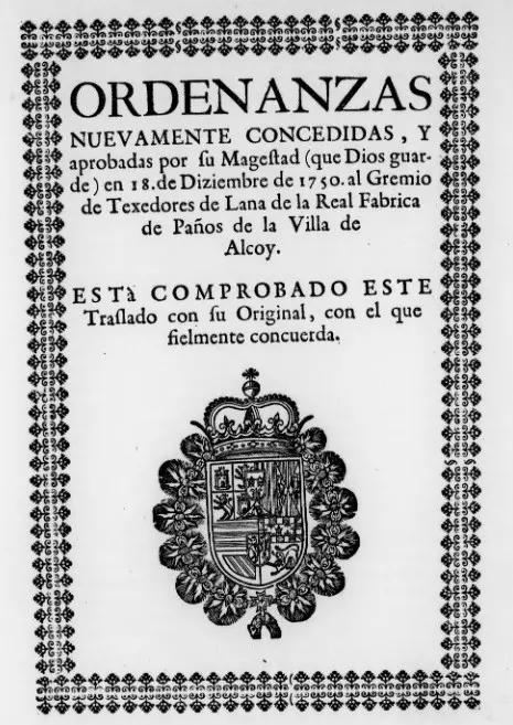 Ordenances de teixedors a la villa d’Alcoi al 1750, de la Reial Fàbrica de Panys